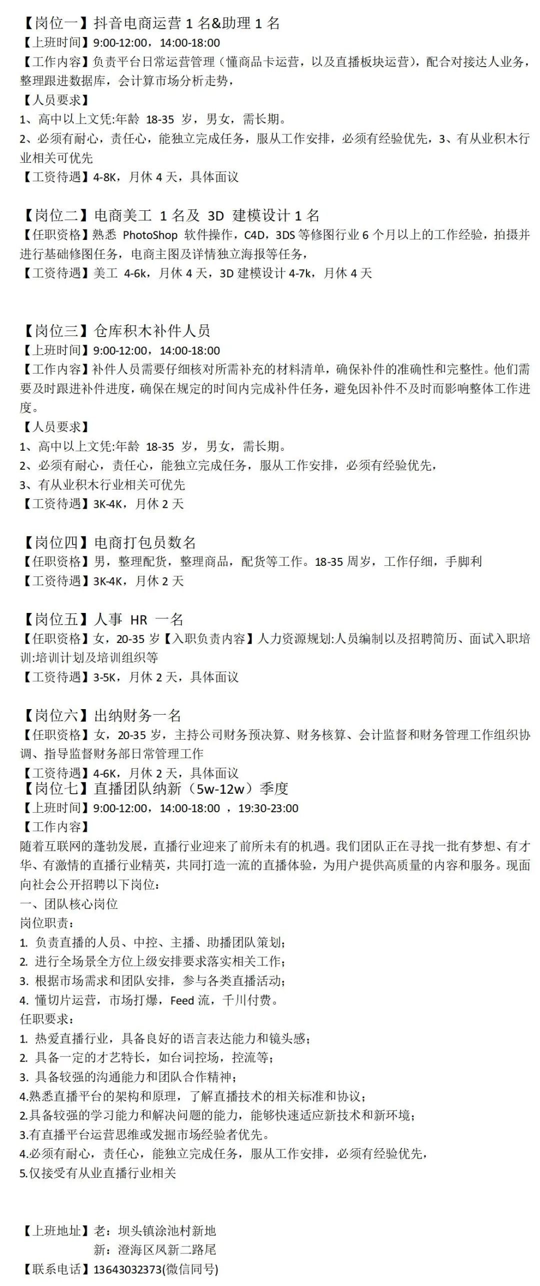 【要求】男女不限,需有二年以上工作经验,熟悉遥控玩具优先