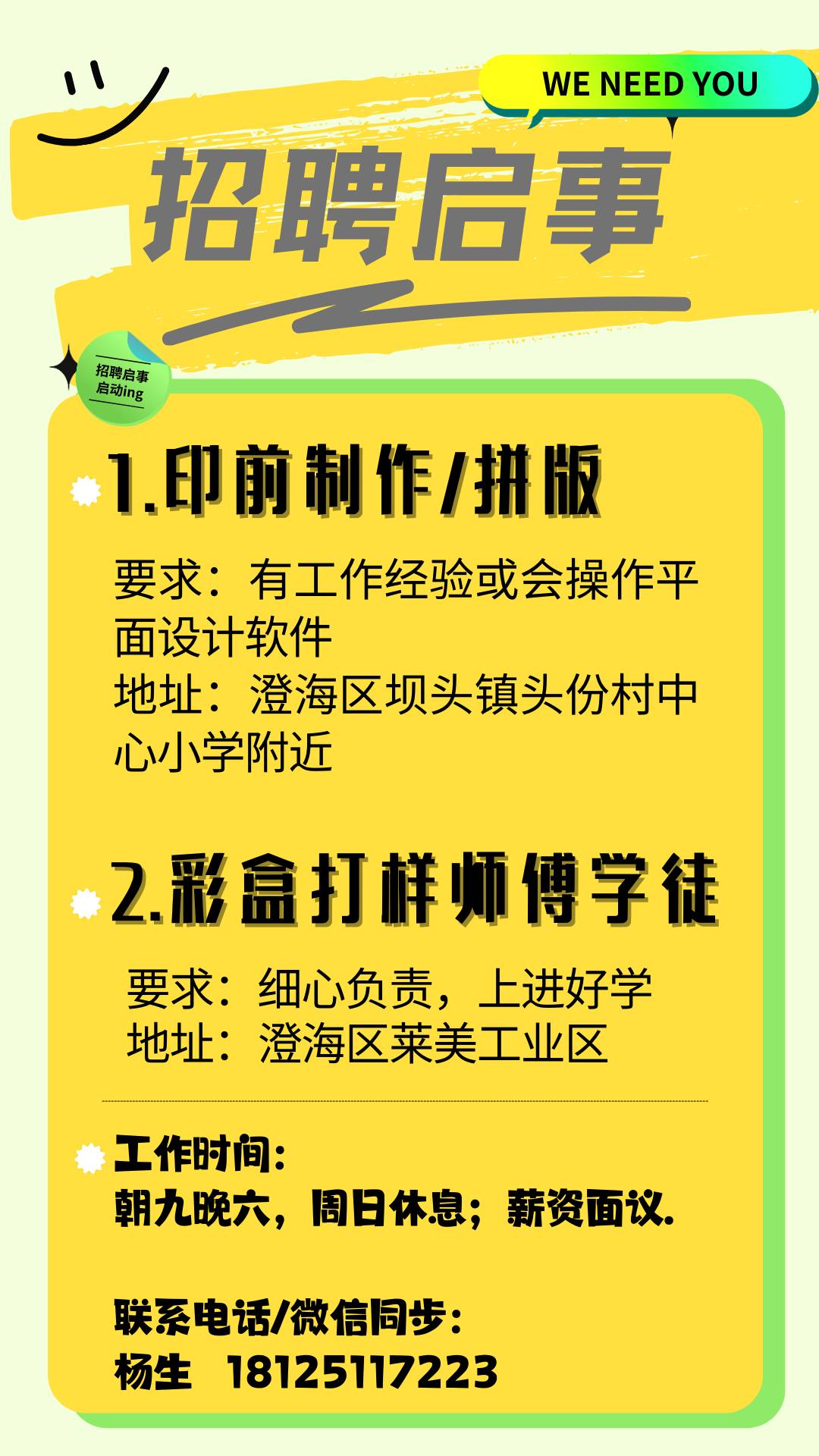 【上班地址】坝头涂池新工业区(超华牙科往坝头电厂方向,坝头奥飞厂东侧)
