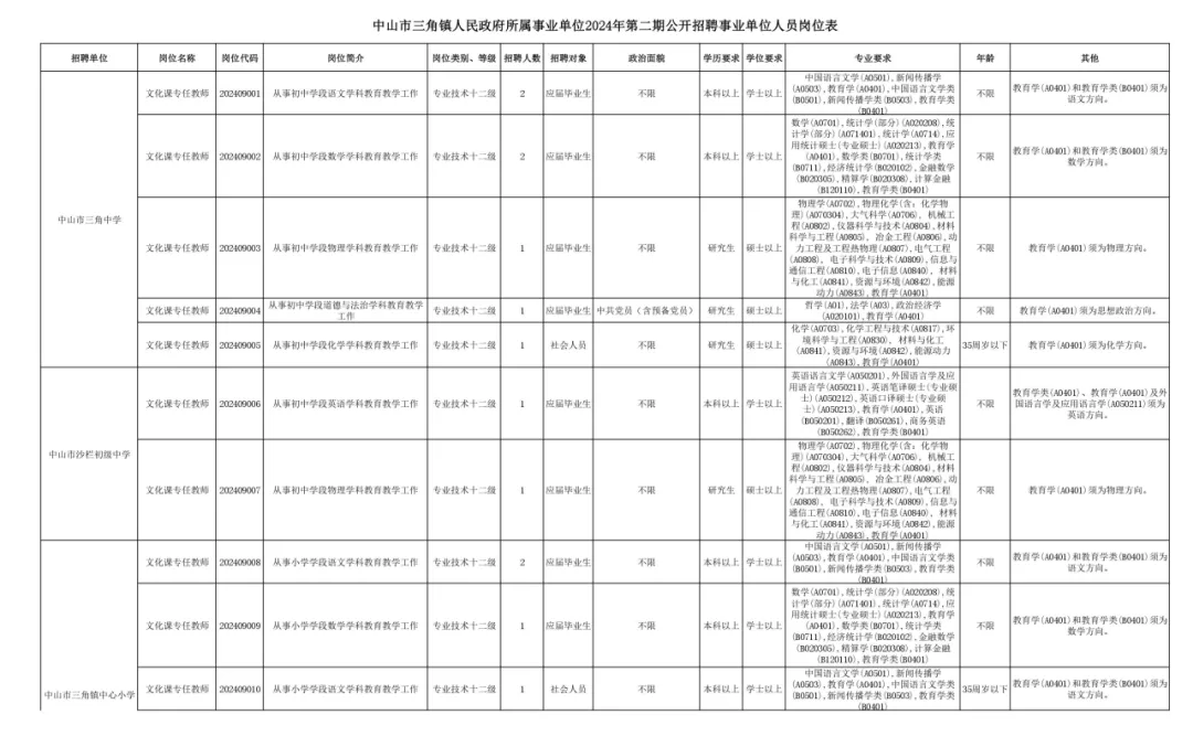 三角镇公办中小学是隶属于三角镇人民政府管理的事业单位,现因学校教育事业发展需要,面向社会公开招聘事业单位人员。