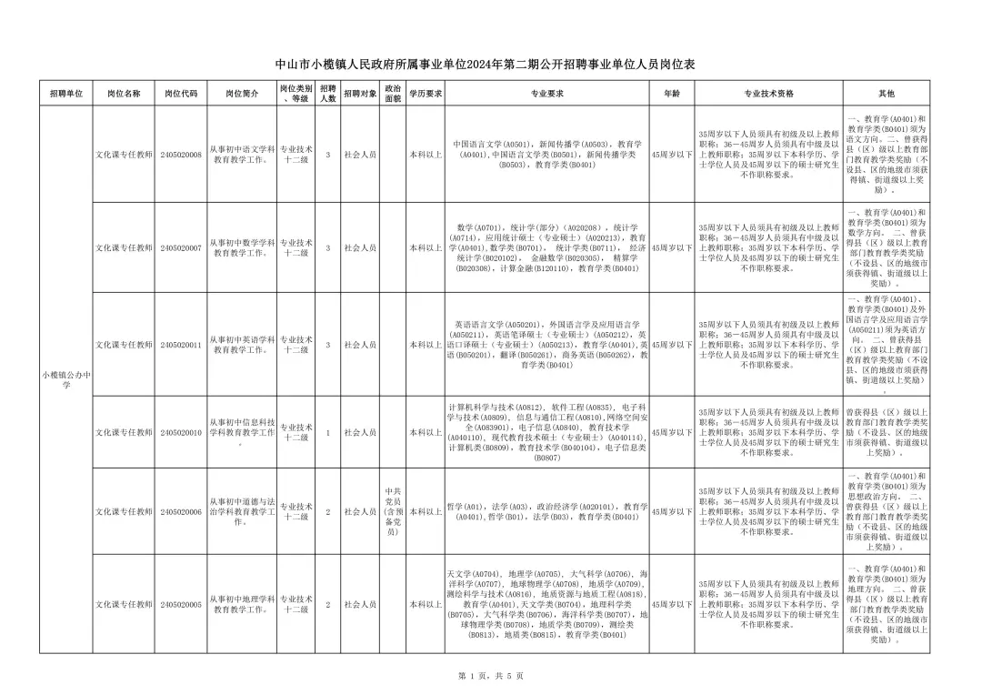 因工作需要,小榄镇决定面向社会公开招聘事业单位人员。