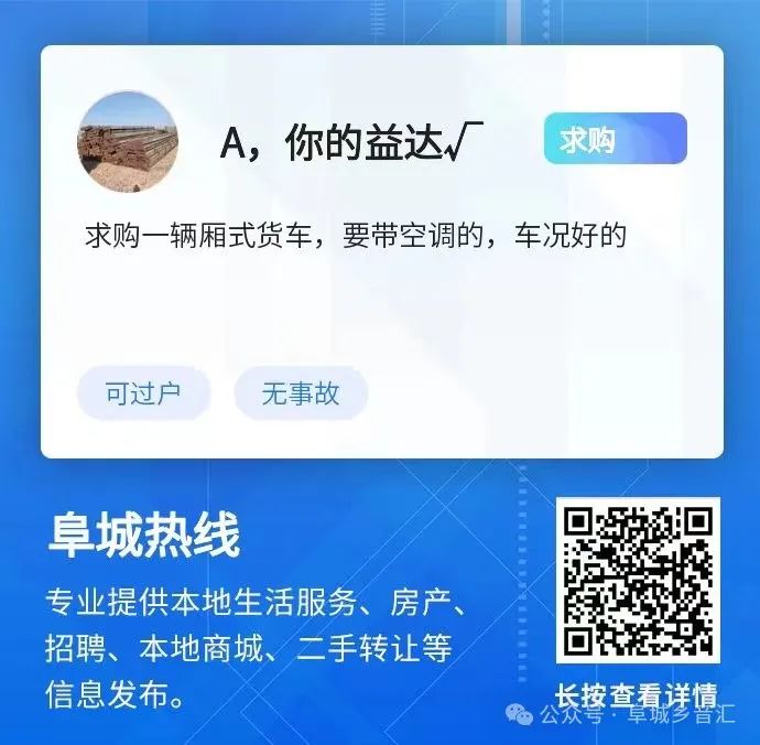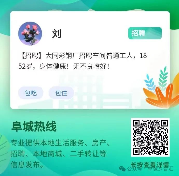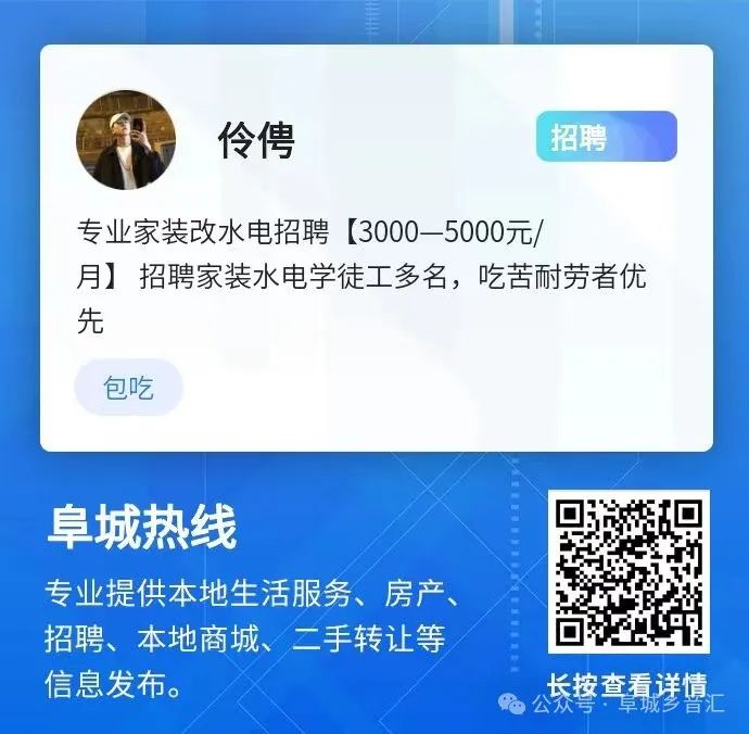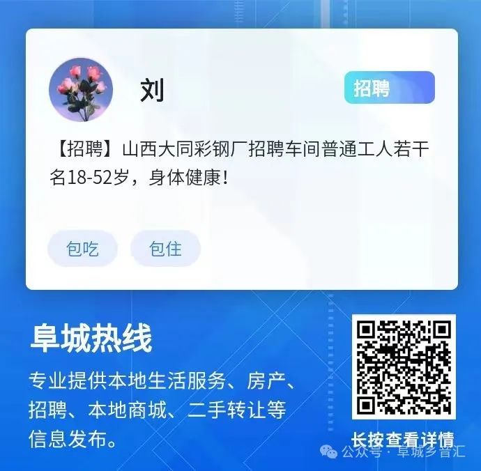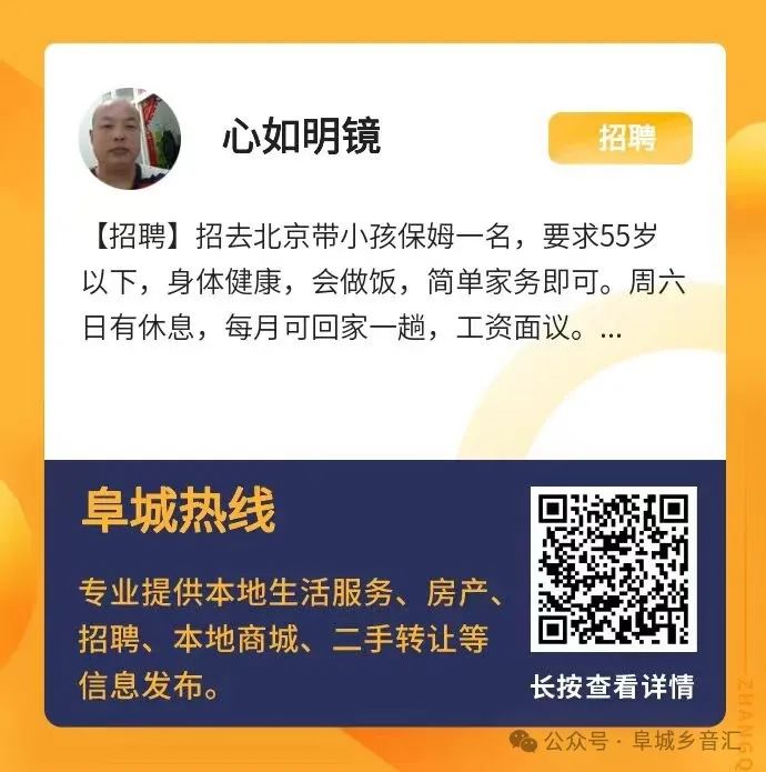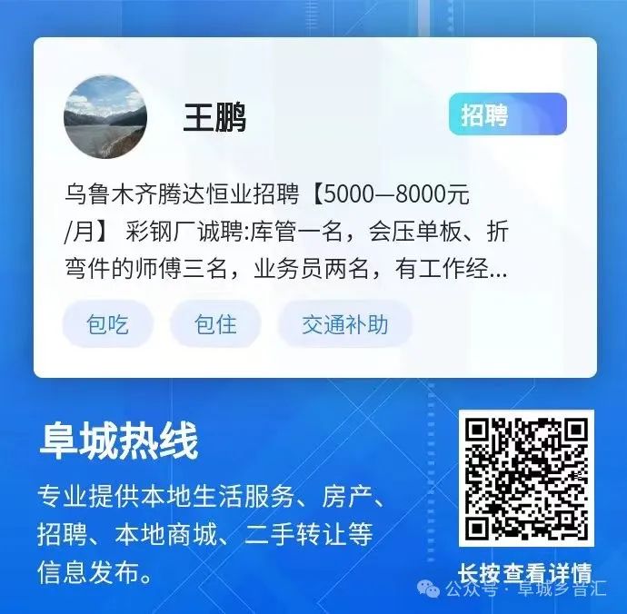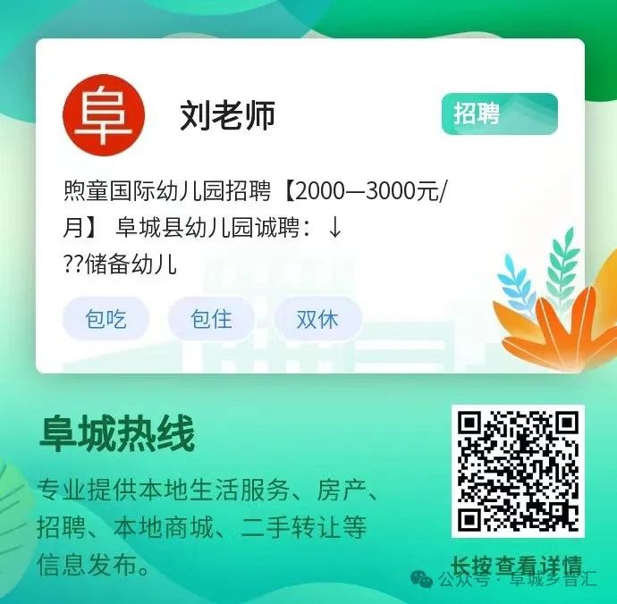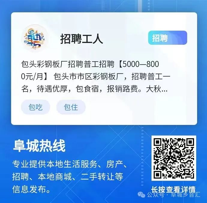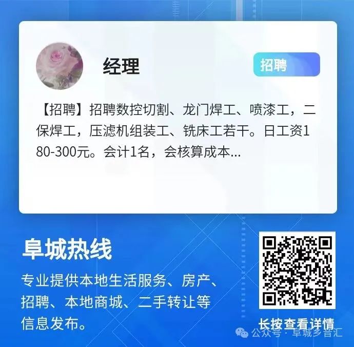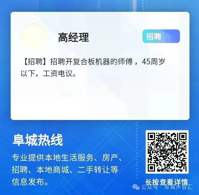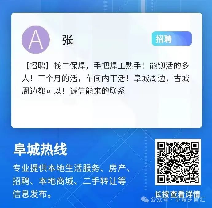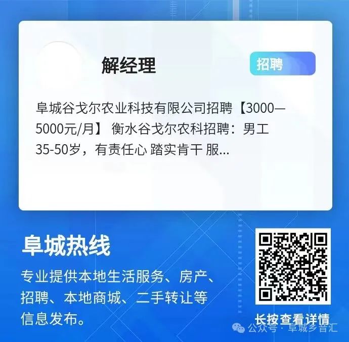 【阜城每日消息】来源阜城热线掌圈,阜城招聘网
