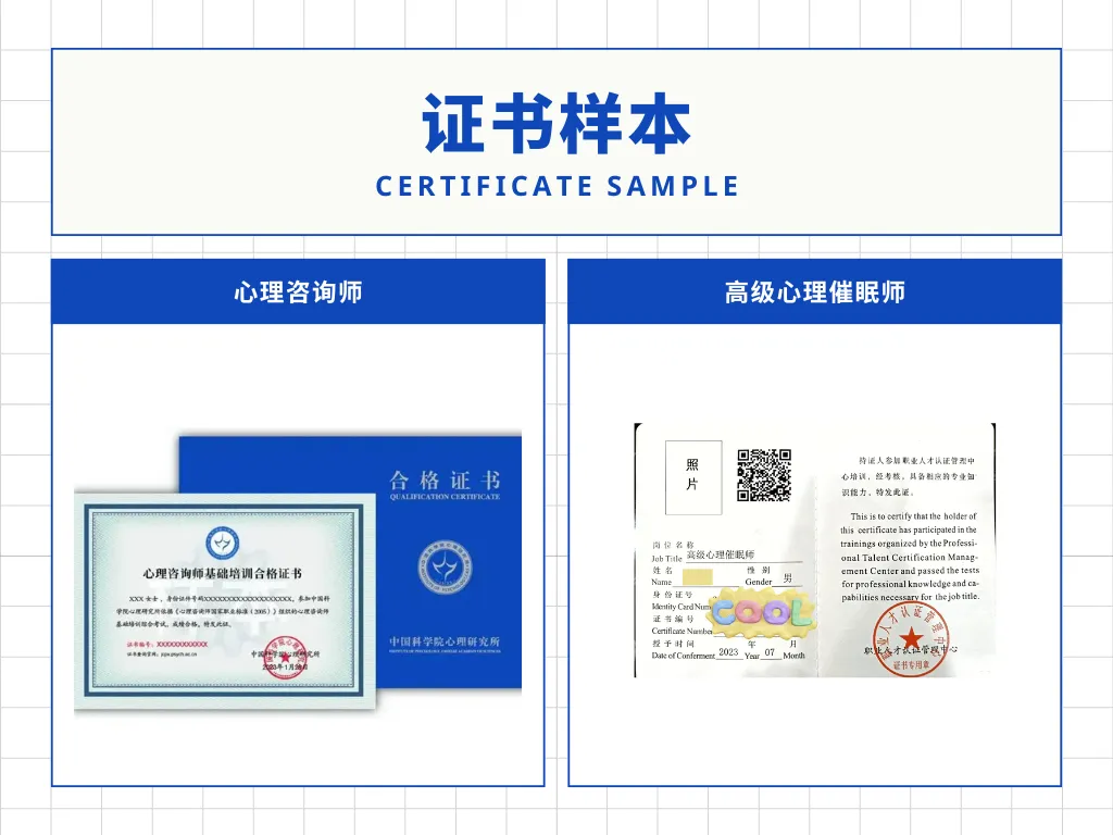 - 证书含金量:高级心理催眠师不仅能够提供专业的心理健康服务,还能促进个人职业发展,满足市场对心理健康专业人才的需求。拥有高级心理催眠师证书的专业人员,由于其专业技能和资质的认可,可能会获得更高的薪资待遇!