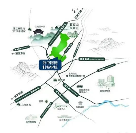 英国阿德科特在中国的姊妹校,也成绩卓越——上海阿德科特学校今年不但拿到了剑桥录取,还有帝国理工(4枚)、伦敦政经(1 枚)、UCL(23 枚)等优质录取,堪称 G5 名校收割机;在美国方向录取上也是成绩卓越,获得了美国加州大学伯克利分校、纽约大学、波士顿大学等世界知名大学的青睐。苏州阿德科特今年则收获了2枚牛津大学艺术系录取。学校坐落在金华·浦江中国理想小镇“春风长住”社区内,占地约118亩。学校是英伦百年贵族名校——英国阿德科特学校在中国的第三所分校;矢志将百年英伦名校与江南文脉相融,融合中西教育优势,为生活、工作在浙中地区的家庭提供普通高中教育品质服务。