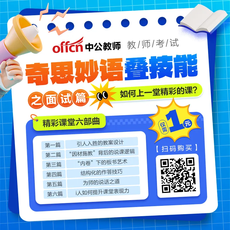 备考教师面试,先从此课开始!教师面试:奇思妙语叠技能之面试篇,告诉你如何上一堂精彩的课?精彩课程6部曲,仅需1元,扫码即可查看购买课程!