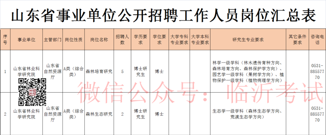 二、招聘岗位和人数根据事业单位公开招聘有关规定,结合工作需要,山东省林业科学研究院拟面向社会公开招聘工作人员7名,具体岗位及条件详见《山东省事业单位公开招聘工作人员岗位汇总表》(附件1)。