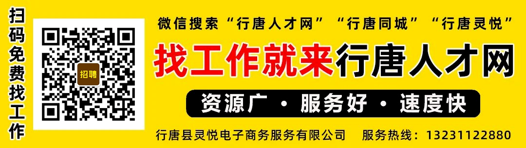 要求:初中以上学历,经验丰富,会电焊,40周岁以下,长白班8小时,实习期3个月,工资4000元加100元全勤奖,转正后工资:5000元,缴纳五险,节假日福利要求:初中以上学历,无色盲色弱,40周岁以下,实习期3个月,工资5000-5500元加100元全勤奖,转正后工资6000元左右,缴纳五险,节假日福利3、车间操作女工数名(工作地点:独羊岗厂区、开发区厂区)要求:初中以上学历,无色盲色弱,42周岁以下,实习期3个月,工资3600元加100元全勤奖,转正后工资:5000-6000元左右,缴纳五险,节假日福利 4、设计员3名(工作地点:独羊岗厂区)要求:有良好的设计专业能力,一定的设计基础,能够顺利完成设计任务;熟练使用 Photoshop\CAD、coreldraw 等软件设计专业毕业优先,大专以上学历,实习期3个月,工资面议,转正后缴纳五险,单休要求:大专以上学历,具备丰富的工厂管理经验,可熟练使用各类办公软件,实习期3个月,转正后缴纳五险要求:大专以上学历,可熟练使用各类办公软件,学历能力强,实习期3个月,工资3000-3500元,转正后缴纳五险,单休地址:1、行唐县经济开发区光明路与科技大街交叉口东北角 石家庄恒德地毯科技有限公司待遇:月保底加提成。提供食宿。待遇优厚,每天工作6小时。正规公司专业后台人员,运营,打造设计,包装,推出。2、运营:男,年龄30-45岁,有经验者优先,工资面议。河北百强企业行唐特招现在开始招聘10086纯接听月休8天不销售客服:中国移动10086转0号键-人工接听客服,主要针对普通用户的来电,解答用户关于流量不够用话费使用快或者家里宽带等问题,我们利用知识库给他们提供优质服务2、口齿清晰,普通话标准,有良好的服务意识和沟通能力;平均工资:试用期:3000-4500;转正:4000元-7000元+/月,优秀者更高;8:00-22:00,在这个时间段内安排8-9小时左右的上班时间4、多元化的激励制度:优秀员工月/季/年度奖励、旅游、聚餐、生日会、年会、工龄奖励、团队经费、节日福利等。地址:行唐县升仙桥南路与正义街交叉口往北约130米(博岳通信)更多招聘信息请关注我们公众号获取