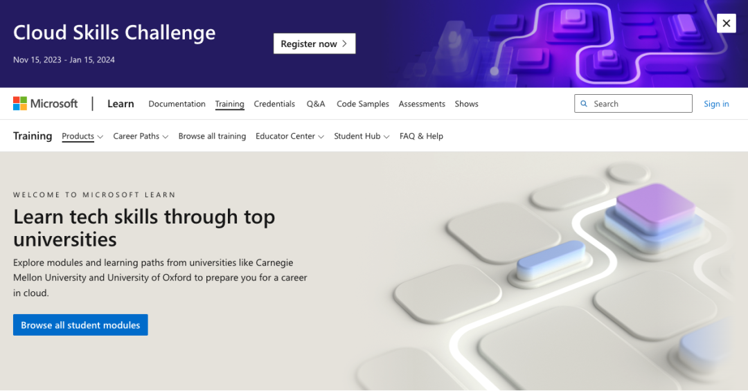 除此之外,微软对于培养人才方面特别重视——它开设了云技能在线学院!零基础的留学生们若想将来在科技领域工作,就可以报名微软的官方课程,分类详细且免费!