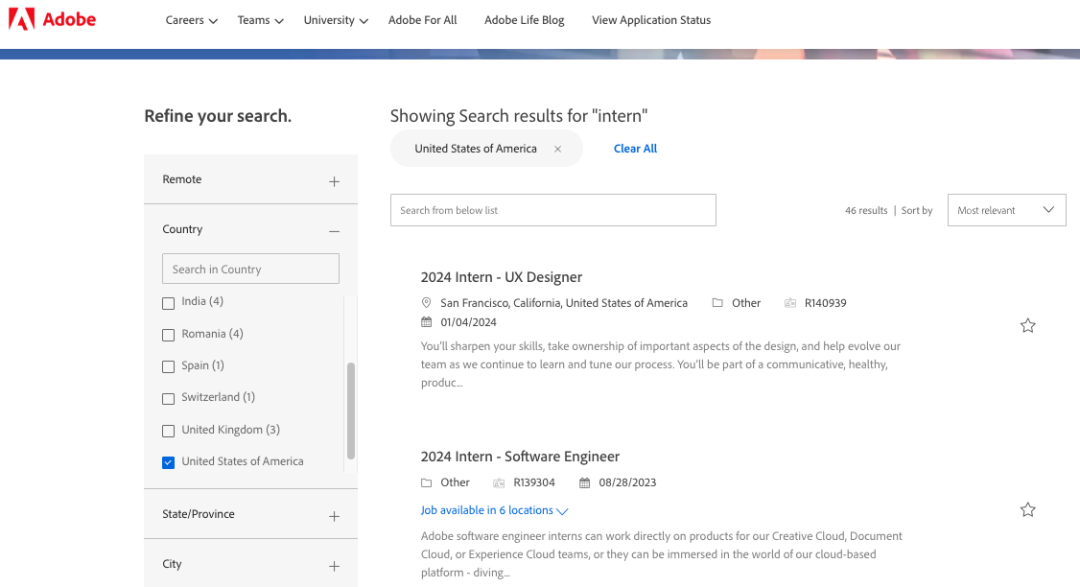 像旗下产品享有“办公全家桶”之称的Adobe就放出了大量的24实习岗位👇