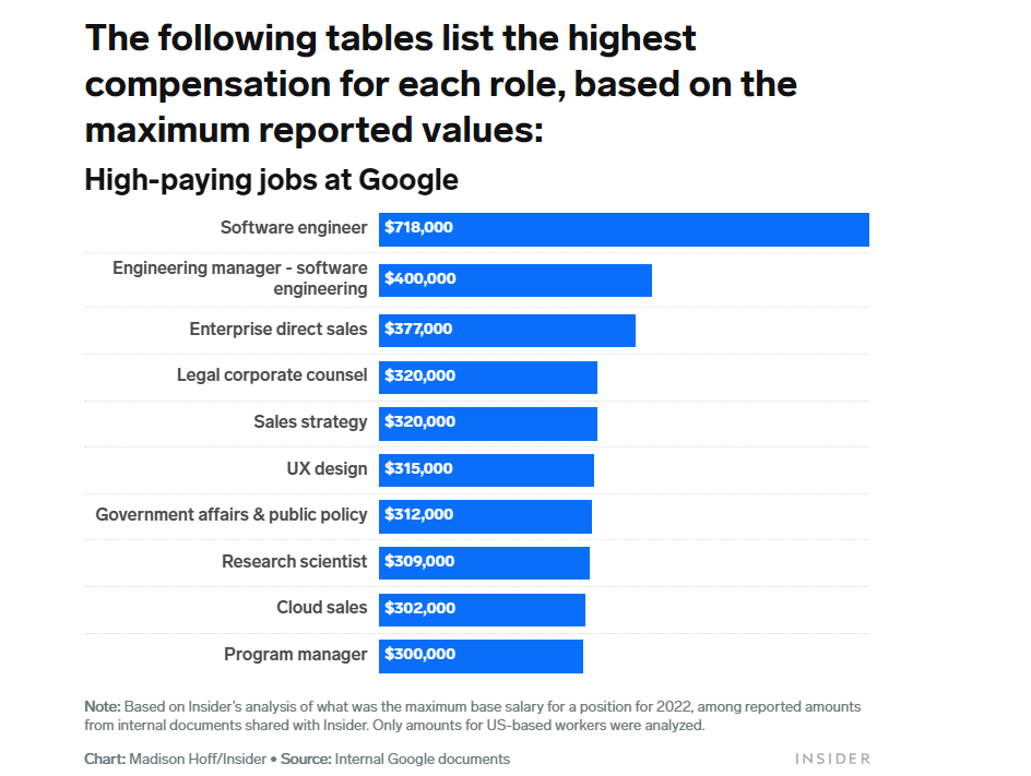 前段时间谷歌被曝出真实薪资,员工的工资中位数为279,802美元,内部薪资天花板是一位L7级别的Software engineer,仅基础薪资就达到了$718,000!