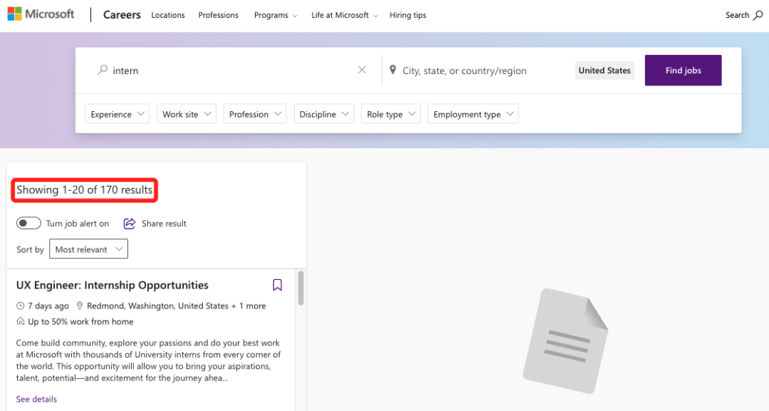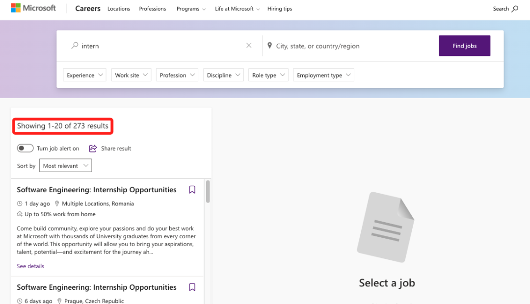 最有可能争夺”硅谷一哥“位置的候选者——微软现在官网就有多达270+个实习岗位在招👇