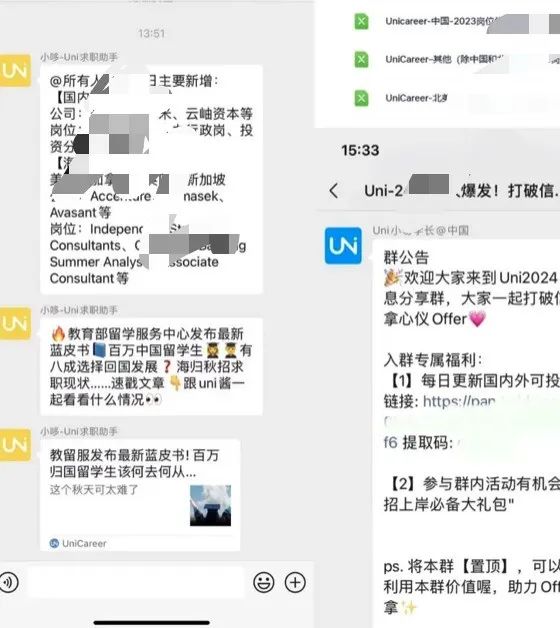 各大头部企业的春招&实习岗位信息、网申链接,我们会按照地区、行业、岗位要求等分类整理,每日更新并分享在群里,提醒大家投递。充分节省你的时间、精力,高效省事!