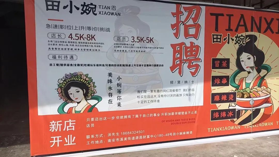 ▼ 【营业员】 田小婉麻辣烫诚招: 店长4.5K-8K 负责门店日常营运、管理菜品、服务质量及成本和培养团队 店长要求:责任心强,沟通、抗压及自律能力强,有进取心 店铺日常运营客户沟通 具备餐饮经营管理、财务及营销策划能力.