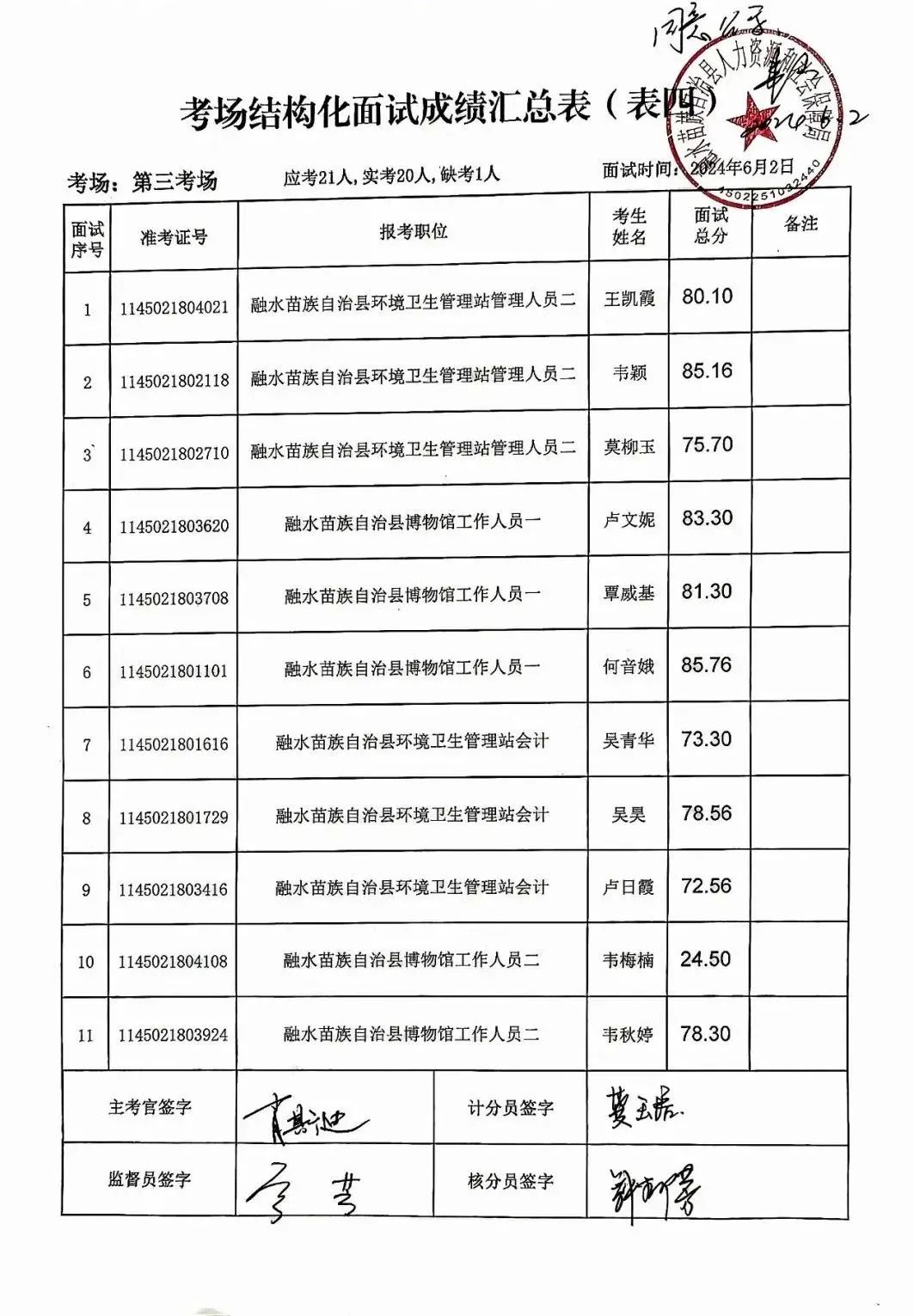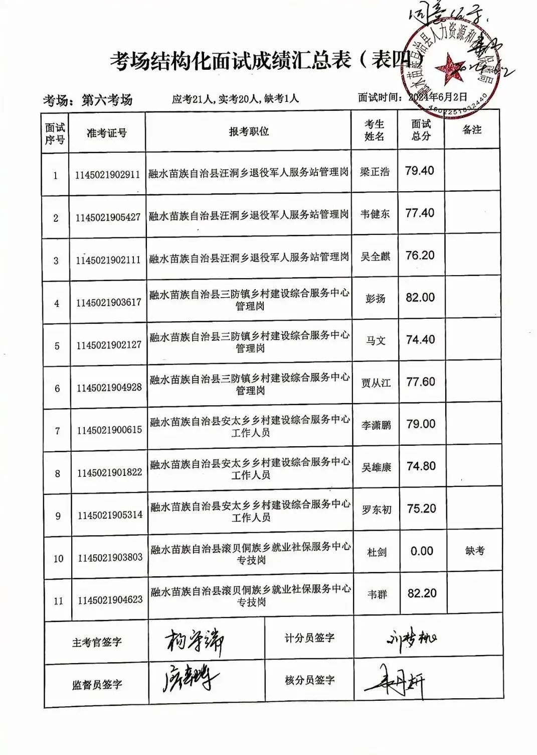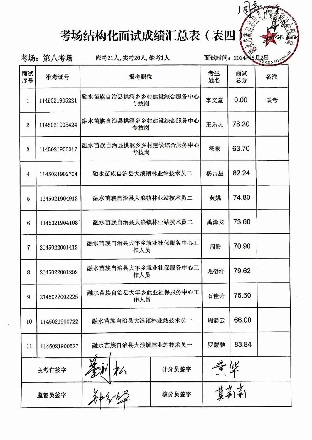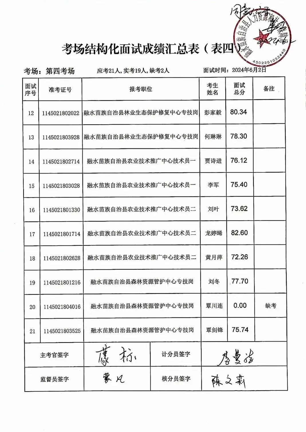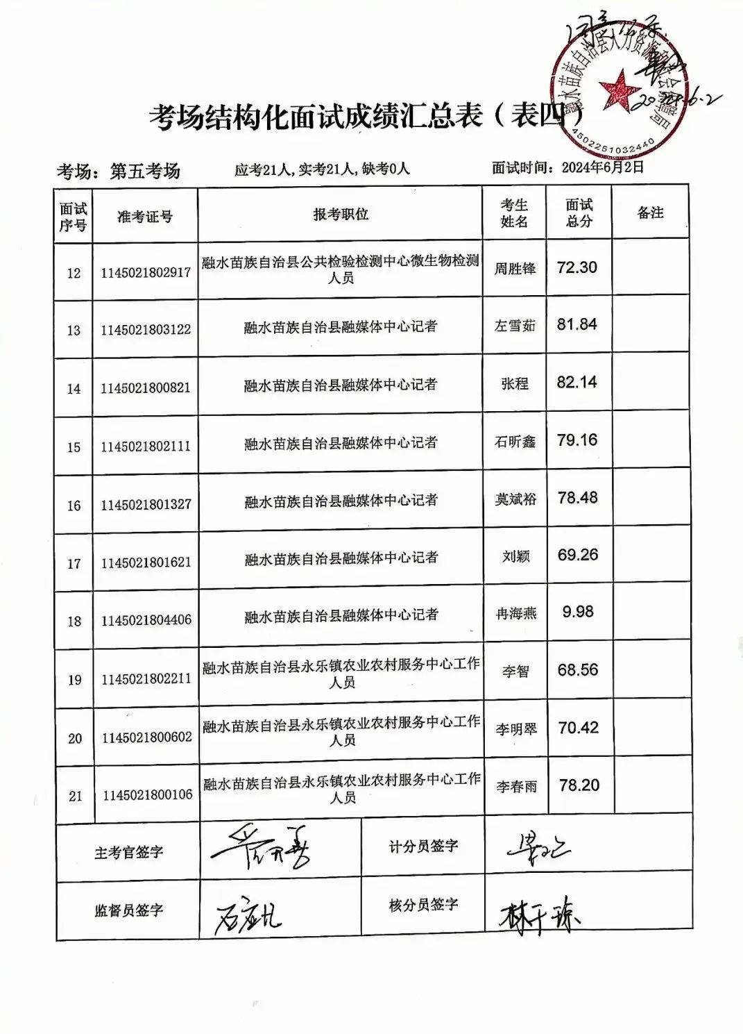 2024年度融水事业单位公开考试招聘工作人员面试成绩公示