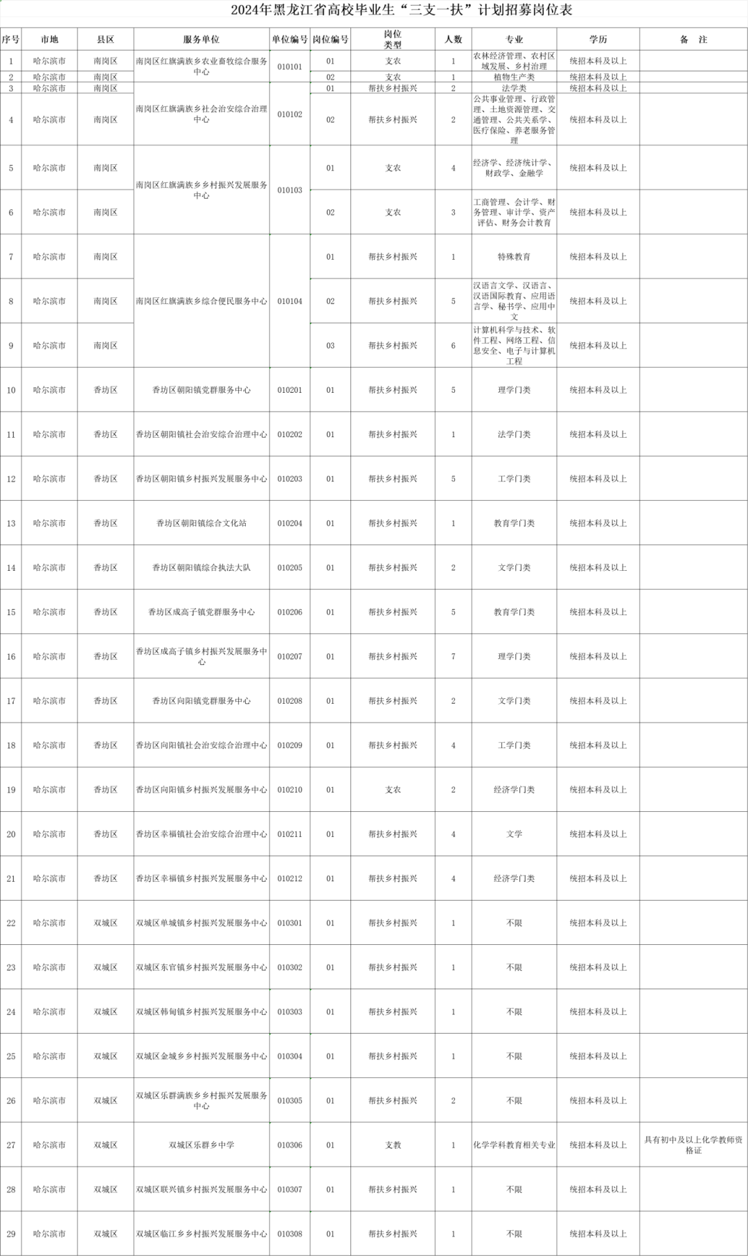 2.黑龙江省在考录公务员时,制定专门计划定向考录服务期满考核合格的“三支一扶”等服务基层项目人员。