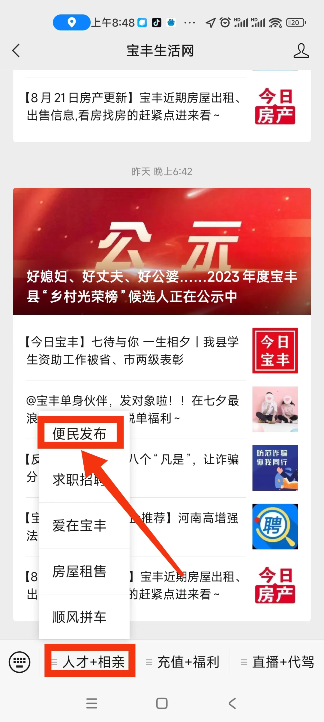 点击左下角“便民发布”