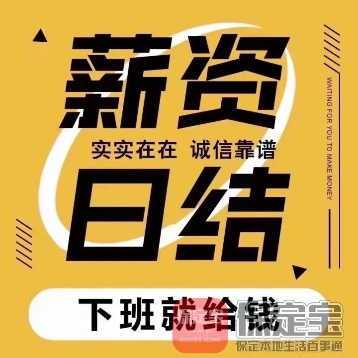 日结工资。下班结清 保底15一小时 早9晚4