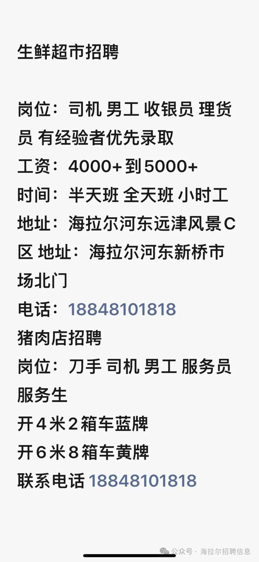 海拉尔河东牧管局附近招聘: