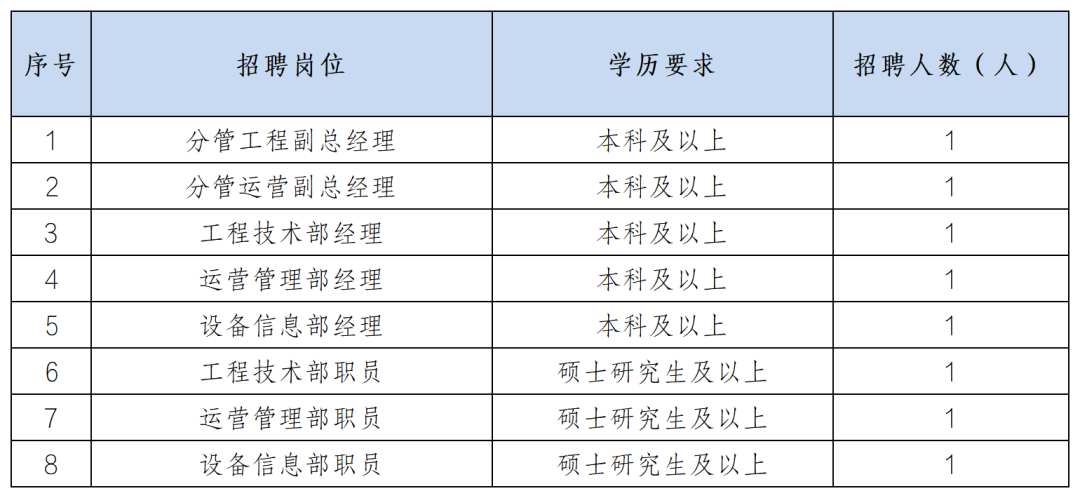 本次招聘8岗,共计8人,详见下表:
