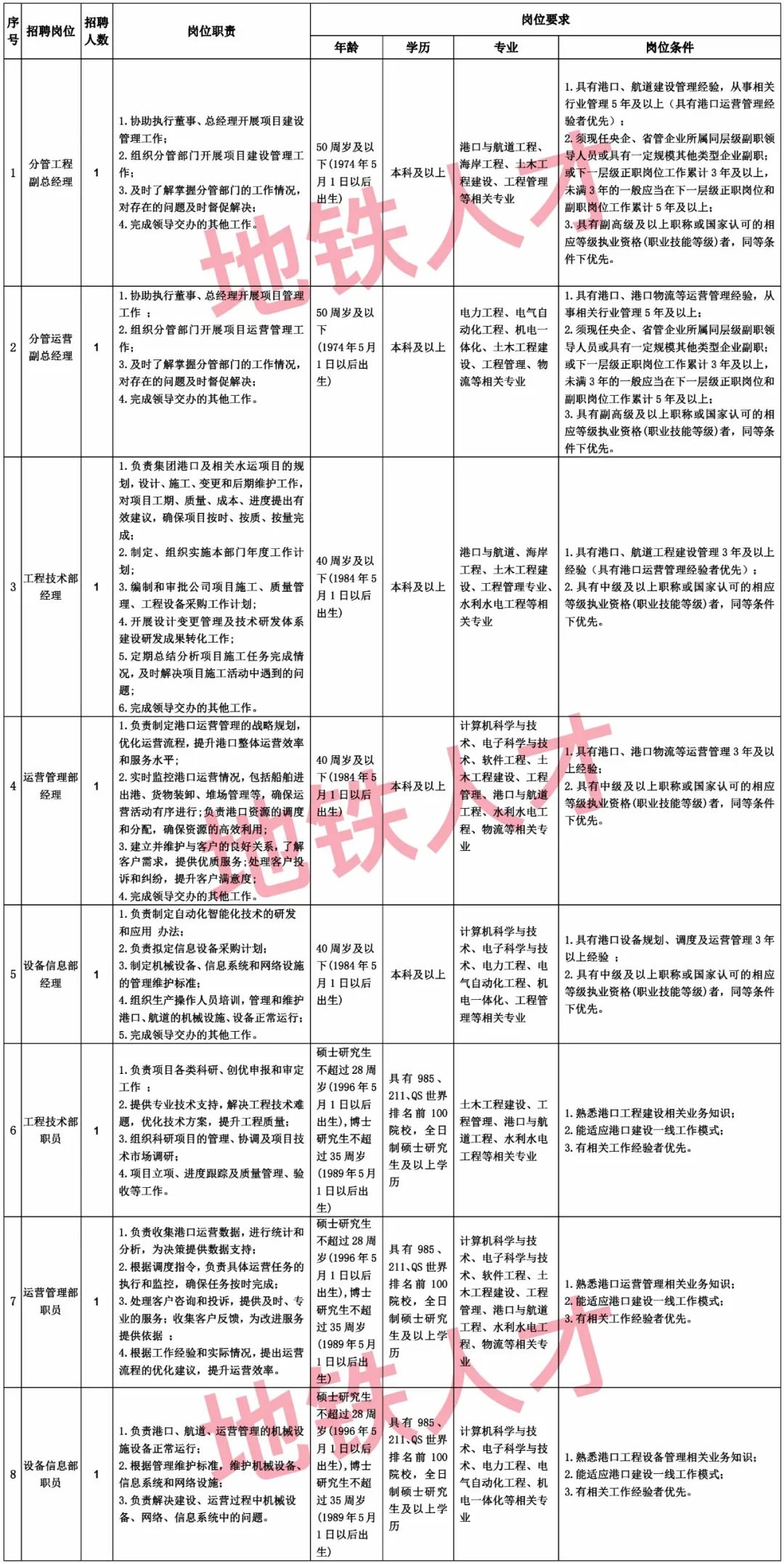注:各岗位职责与任职条件详见附件《河南交投港航有限公司2024年社会招聘岗位一览表》