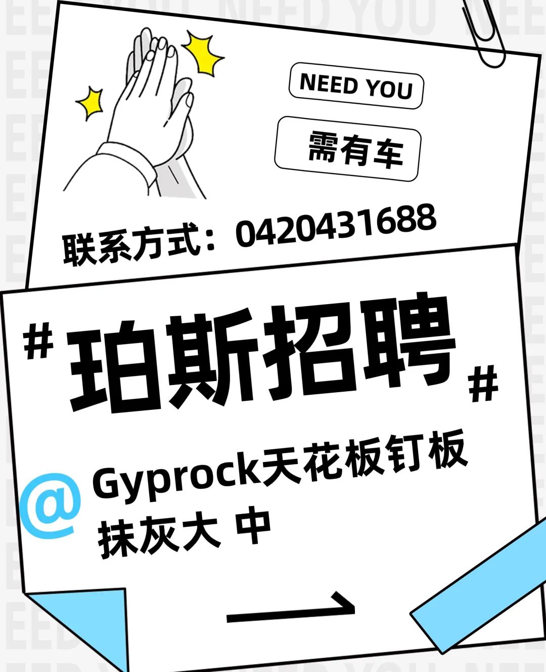 高薪诚聘 Perth专业轻钢安装公司高薪诚聘轻钢安装工人。1. 本公司工时稳定,每周六天,有特殊需求,可保证每周七天全天工时。2.正规本地建筑公司,进payroll,打养老金。3.两年工作经验,可做木工职业评估,公司可担保485。择优担保PR。