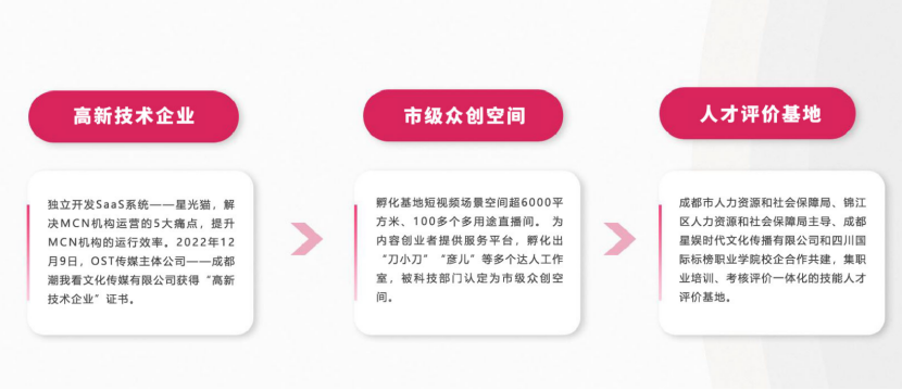 OST传媒,互联网内容专家、短视频达人孵化专家、网络表演经纪机构。整合国内外内容及运营人才,为全网视频达人、娱乐主播、电商主播和企业机构提供从内容孵化、包装、运营、供应链、商业化等全方位服务。