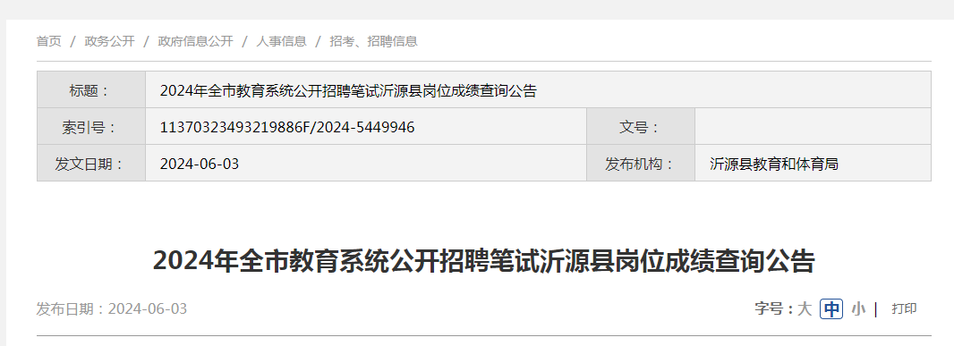 附件:2024年全市教育系统公开招聘笔试沂源县岗位笔试成绩.xls