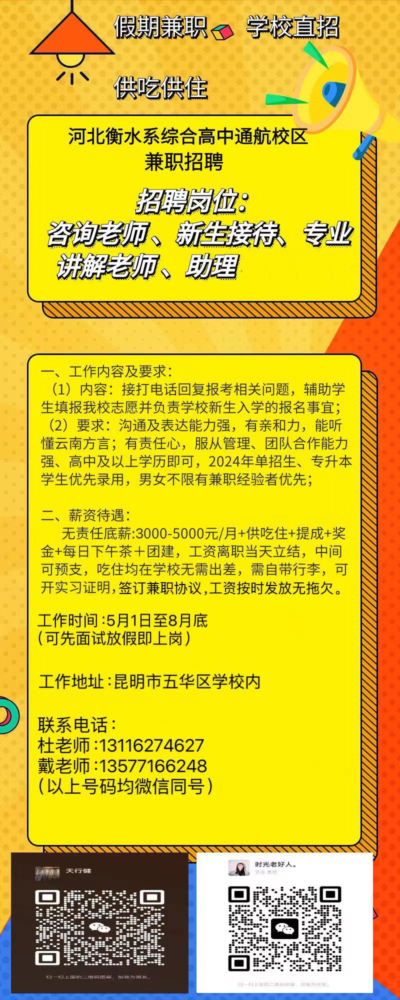 工作时间:5月1日至8月底(可先面试放假即上岗,可兼职可全职)