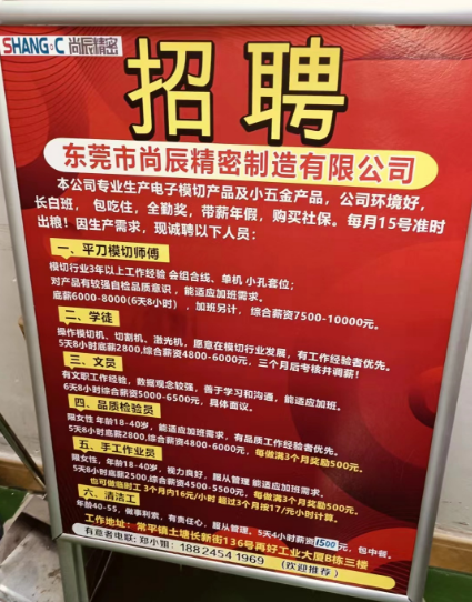 问:最近收到很多朋友在询问如何发布招聘信息。 答:欢迎各招聘企业(HR)投稿发布招聘信息!请将招聘信息发送至:HR_Diecut@163.com,或者公众号主页发私信,图/文/附档均可。谢谢! (免费,纯公益,不收费!) =================== 【微语】珍惜时间最好的方式,是用时间成就更好的自己。你认真对待生活,生活也会赠你美好。迎着晨光,心怀期待,步履不停,希望你每天都过得精彩、充实。 =================== 【发布时间:2024-06-04】 =================== 招聘圆刀机长:2名, 要求会异步,有责任心 薪资待遇:26天10小时,9-10K,包吃住。 工作地点:东莞清溪(可购买深圳社保) 联系电话13431544241 =================== 招聘 1. 圆刀机长:5名(8-10K) 东莞塘厦 联系:15007559417卓 =================== 招模切师傅多名: 1、精通模切技术,熟悉掌握AB板模切套位,及其机器排废技巧快速调模。 2、熟悉材料,懂模切工艺改进。 3、能独立完成调机、生产,熟练操作模切设备; 4、做好机台的日常保养 5、有多年模切工作经验; 6、26天10小时 月薪8000~8500以上加班费按劳动法 福利:公司包吃住,绩效,优秀员工奖,年终奖 联系电话13712233997 =================== 招聘 现招多名跟单文员,有经验者优先 薪资待遇面议 地址:东莞市常平镇土塘村港建路常平云谷 ☎️18929226008微信同号 =================== 苏州威仕能电子招聘 品保1-2位(2-3年模切厂经验 待遇4000-6000), 以上都是5天8小时,13薪,没有宿舍 地址 昆山周市 市东河路8号 电话17315453075(不是微信号) =================== 苏州恒铭达股份有限公司, 招平刀机长工资9000到14000, 地址昆山巴城。 加微信,打电话都行,18625005089 =================== 招聘:平刀技术员2名,, 工作地点:昆山周市, 电话13862645172,薪资面议 =================== 惠州市致远声学科技有限公司 招聘: 1、平刀师傅3人,长白班,有耳机、手机辅料工作经验者优先,薪资7.5k-9k 平刀临时工 3名 40/h 2. 手工包装数名,薪资4.5k-5.5k,要求:视力好 公司包吃包住,无需交水电费,宿舍配备空调、热水器 工作地点:惠州市博罗县园洲镇新南一路 联系人:刘小姐 19892849562(微信同号) =================== 招聘以下职位: 1、模切师傅 多名(手机保护膜) 2、QE工程师 1名 以上岗位免费提供吃住,薪资私聊, 地址:深圳龙岗 联系电话:蒋小姐18825281228微信同步 ===================