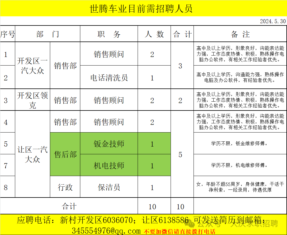 公众号小编微信👆,加好友注明来意 如果您想及时了解到最新的招聘信息,不错过每一次推文,请拉到下方,在右下角点一下在看。 重要事项请知晓:本公众号帮大家发布各类招聘信息,平台所发布的信息请大家自行核实真伪!在交易及会面时请大家注意人身财产安全!如在交易或是会面之中发生人身损害或财产损失以及任何赔偿责任,平台概不承担,由受损害人依据法律规定依法解决!! 凡在本平台发布信息与查看平台信息者,均视为已知晓并接受! ![]() 扫描二维码 大庆求职招聘 长按识别关注我们 |