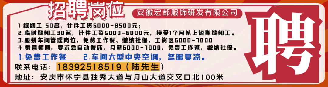 1.缝纫工 50名,要求:技术熟练,计件工资6000-8500元;