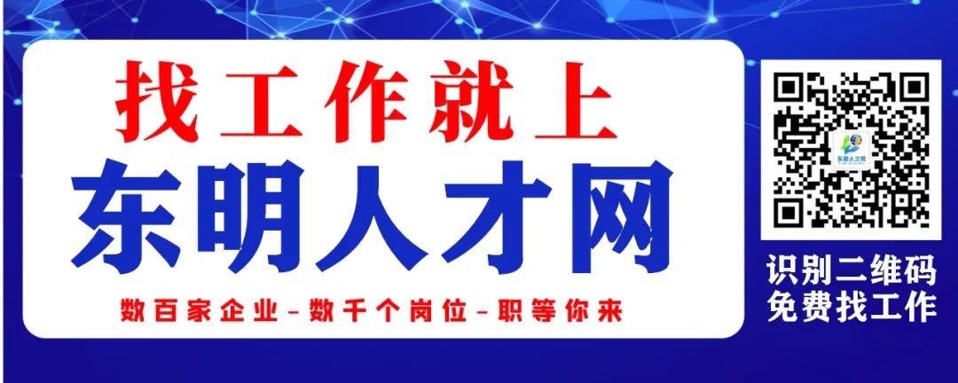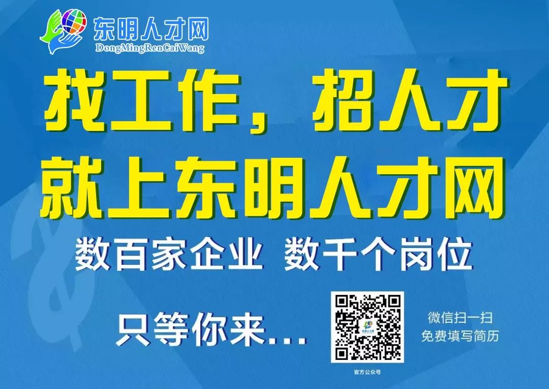东明人才网——找工作、更靠谱!服务覆盖东明十镇两乡两街道办事处,让您全方位、实时掌握东明前沿招聘和职场动态!同时提供劳务输出、求职信息,招工信息和人力资源服务!早关注东明人才网,就多一个挑战高薪的机会!客服微信:dmzp999 点击“阅读原文”进入查看更多招聘 |