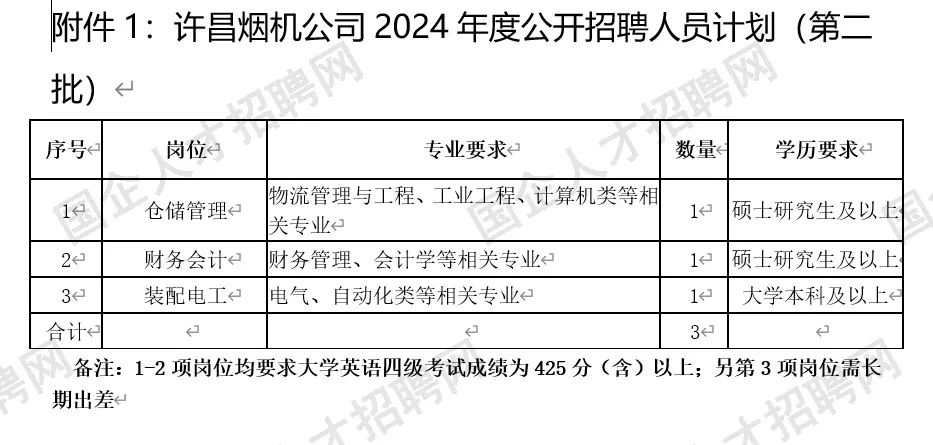一、企业简介 许昌烟草机械有限责任公司(以下简称许昌烟机公司)于1958年建厂,1965年开始涉足烟草机械领域,2002年改制为有限责任公司,成为中国烟草机械集团有限责任公司的四大控股生产企业之一。公司紧密围绕“成为行业认可、社会尊重、职工满意的世界一流烟草设备制造企业”的愿景目标,稳步推进滤棒成型和辅联物流制造基地建设,近年来公司保持高质量稳定发展态势,连续被认定为“国家级高新技术企业”,产品覆盖国内所有卷烟工业企业,并远销至东南亚、欧洲、非洲、美洲等近50个国家和地区。 二、信息发布渠道 2024年度外部招聘公告(第二批)同时在国家烟草专卖局人才招聘平台(www.tobacco.gov.cn)、国聘网(www.iguopin.com)等渠道发布。 三、招聘对象 招聘范围为2024年全国普通高等院校统分统招应届毕业生或符合国家规定视同为应届毕业生的人员或2023年7月1日至招聘面试前取得国(境)外学位、完成教育部门学历认证且初次就业的留学回国人员。 四、基本条件 (一)具有中华人民共和国国籍; (二)拥护中华人民共和国宪法,拥护中国共产党的领导和社会主义制度; (三)具有良好的政治素质和道德品行; (四)具有正常履行职责的身体条件和心理素质; (五)具有符合岗位要求的文化程度、工作能力; (六)与其他用人单位不存在任何形式的劳动关系,无违法犯罪及不良记录; (七)具备招聘公告所要求的资格条件。 五、招聘岗位及资格条件 本次计划公开招聘3人,具体岗位及专业学历要求详见附件1:《许昌烟机公司2024年度公开招聘人员计划》(第二批)。 六、报名考试时间及方式 (一)报名时间 自发布之日起至2024年6月11日。 (二)报名方式及要求 应聘者只能选择招聘计划中的1个岗位进行申报,报名流程如下: 应聘者将应聘登记表、基本信息情况表、简历、证书、成绩单等以下资料发送至公司邮箱:hr@xcyj.com,邮件主题为“应聘岗位+姓名+学校”,邮件附件务必包括下列附件: 1.《许昌烟机公司2024年度应聘登记表》(附件3),存在回避关系的,应聘者应及时告知招聘单位(需要)。 2.《许昌烟机公司2024年度应聘人员基本信息情况表》(附件2)(需要) 3.个人简历及有效期内二代身份证扫描件正反面(需要)。 4.学信网《教育部学籍在线验证报告》(国(境)外学历人员此项为《国外学历学位认证书》);硕士研究生(含)及以上学历人员应提供本科学历、学位等相关证件扫描件、学信网《教育部学历证书电子注册备案表》(需要)。 5.本科、研究生成绩单扫描件(需要)。 6.荣获奖项、证书,以及证明自身科研成果(发表文章、专利、著作)等相关资料。 (三)考试安排 我公司将在报名人员中择优选择人选参加考试,并通过邮件的方式通知笔试人员,请务必保持手机、邮箱等通讯顺畅。考试具体时间、地点以我公司具体通知为准。 (四)考试内容 考试包括笔试和面试。 1.笔试。采用闭卷方式,考试科目为行政职业能力测试和申论。 2.面试。公司招聘专家小组从基本素质、专业理论水平、技能水平、人岗匹配等维度对应聘毕业生进行评价打分;采用单独面试方式:即至少3名主考官面试1名应聘者。 七、结果公示 应聘者经资格审查、考试、考察、体检、公示后录用。拟录用人员在国家烟草专卖局外网指定人才招聘平台(www.tobacco.gov.cn)上进行公示,公示期为5个工作日,公示无异议办理录用手续。 八、薪酬及福利待遇 拟录用人员正式入职后按公司相关制度发放薪酬及福利、办理“六险两金”(五项社会保险、补充医疗保险、住房公积金、企业年金)。 九、回避事项 (一)应聘者不得报考录用后即构成干部任职回避情形的岗位,也不得报考与本人有夫妻关系、直系血亲关系、三代以内旁系血亲关系以及近姻亲关系的人员担任领导成员的用人单位的岗位。 (二)应聘者如与本单位职工有直系血亲关系、三代以内旁系血亲或近姻亲关系的,应及时告知公司,公司将按相关规定在组织招聘工作时安排回避。如故意隐瞒不报的,一经查实,取消应聘人员考试或录用资格;已签订就业协议或被录用的,解除协议或劳动关系。 十、其他相关事项 (一)应聘者提供的材料,公司将严格保密,不再退还。 (二)应聘者应对所提供的个人信息和相关资料的真实 性、有效性负责。在招聘任何环节发现应聘者不符合资格条件或有弄虚作假行为,将立即取消其报考或录用资格,已经录用的,依法解除劳动关系。 (三)应聘者应确保联系方式填写准确,通信工具畅通。按时参加招聘的各个环节,凡未按要求时间参加的,视为本人弃权。招聘各环节未通过人员将不再另行通知。应聘者有替考、考试作弊等情形的,一经查实,取消考试成绩或录用资格。 (四)新招录的大学毕业生到公司报到后,由公司报销毕业生参加招聘活动中的城际往返交通费及从学校或家庭居住地到公司报到的单程路费(不含飞机票、高铁一等座、商务座和软席卧铺票等)。 (五)本次招聘不指定考试辅导用书,不举办也不委托任何机构举办考试辅导培训班。 十一、联系电话 (一)招聘咨询电话 联系人:刘老师电话:0374-3266980 17550195858 赵老师电话:0374-3266996 13782265350 (二)招聘监督电话 许昌烟机公司纪检监察部电话:0374-3266993)