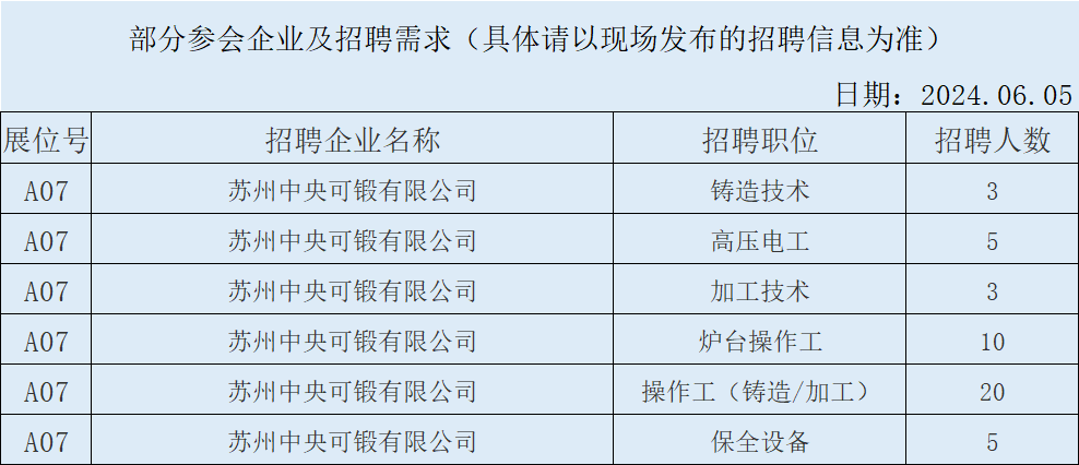 ![]() 常态化招聘会 持续开展中~ 欢迎广大企业和求职者参加! ![]() ![]() 招聘现场 ![]() ![]() “职”为有准备的你 除了综合招聘会还有高校毕业生专场、 零工专场、劳务品牌专场等等 大家有时间一定要看看哦 都是很不错的机会呢! ![]() 招聘预告 ![]() ![]() ![]() 2024年6月5日(周三) 8:30--11:00 吴中区人力资源市场 (塔韵路178号) ![]() 招聘详情 ![]() ![]() ![]() ![]() ![]() 找工作,招人才 就来吴中区人力资源市场 每周二、三、五上午 常态化开展现场招聘会 适时同步开展直播招聘 咨询热线:65259221 市场地址:吴中人力资源大厦一楼大厅 更多信息 敬请关注 (https://wz-hr.cn/page/homeIndex) 微信公众号“苏州市吴中人力资源开发有限公司” |