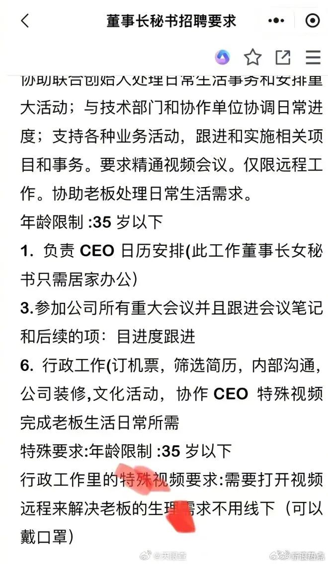 ☝ 点击上方名片阅读更多精彩内容 作者:哲空空 来源:哲空空(ID:zhekongkong) 企业招工难,往往因招聘信息写不好。最近有家公司的招聘书,堪称业界楷模。 这家公司叫上海锟朔智能技术有限公司,成立于今年4月12日,注册资本500万人民币,法人兰某某,经营范围包含人工智能软件开发。 看懂该公司的招聘风格,只需将其公司名字中的“锟”字拆开来解,左边是“金字旁”,右边是“日和比”,彰显了汉字的博大精深,也宣扬了传统文化。 在该公司招聘董事长女秘书的信息中,开门见山写道,秘书带点异性关系,但是不是用于线下,只是用于线上。 可能是怕应聘者看不懂,在招聘要求的第6条解释道:需要打开视频,远程来解决老板的生理需求,不用线下,括弧,可以戴口罩。 恕本哲少见多怪,如此下流无耻又光明磊落的招聘,我是头回见识,但细细推敲一番,又忍不住为其击节赞叹。 我们知道,在这个严肃活泼的时代,一些狼心狗行的企业主招女秘书,往往暗含了“解决老板生理需求”的条件,但毕竟不是所有的企业主都是“狼心狗行”,因工作所需正常招聘的也大有人在。 这就给应聘者带来一定困扰,不免要暗暗猜测,该公司要招的究竟是字面意义上的“女秘书”,还是俗称的“小蜜”呢?如果女秘书岗位的工资标的丰厚一点,这疑虑就会加深一层。 而这家“锟”公司就没有这个问题,在对女秘书的要求中,摆明了说,要解决老板的生理需求,同时精确地注明,不用线下,只需线上,借助远程视频的方式即可,还不忘加个贴心的括弧,表示可以戴口罩。 如此一来,应聘者疑虑全消,就是这么个事,童叟无欺,来或不来,悉听尊便,彼此省了多少时间。 若将“锟”公司的招聘方法上升到理论层面,那就是将“潜规则”摆上台面,劳资双方彼此撕掉虚伪的假面,减少内耗,提高效率。 如果所有公司都按这个法子,让潜规则浮出海面,势必会大大提高整个社会的生产效率。 比如,某公司老板若爱听恭维话,就可以在招聘要求中注明,员工除了完成本职工作外,还需每天按时拍领导马屁,早中晚各一次,马屁拍的勤拍的好,发奖金鼓励,若马屁次数不够,或者马屁质量不足,予以通报批评,长期马屁不过关的员工,予以开除。 可惜,就在本哲努力将“锟”公司的招聘方式发扬光大时,发现这家公司已经将招聘信息下架了。 有律师表示,该公司已涉嫌违法犯罪。 既然法不容情,在下就不发表高论了,还是让潜规则继续潜下去吧。 本文作者:哲空空,蓝钻故事创始人,午夜遛狗的哲学家。 小编每日编辑不易,若您还满意,可点左下角“分享”支持小编,或点右下角“在看”,感激不尽! |