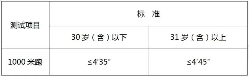 1993年6月3日及以后出生的应聘者,执行30岁(含)以下体能测评标准;1993年6月3日及以前出生的应聘者,执行31岁(含)以上体能测评标准。