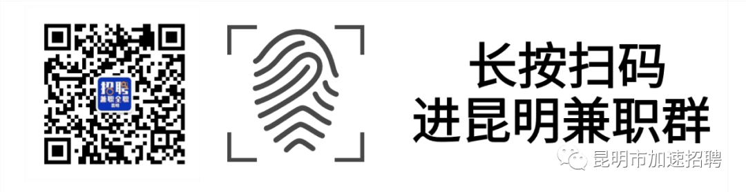 即可获取联系方式。应聘请注明职位+来源微信公众号昆明市加速招聘,直达推荐。