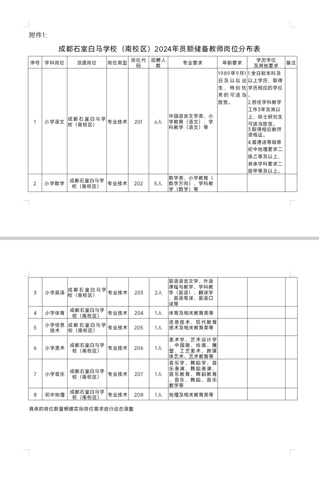 成都石室白马学校是由成都石室中学深度领办的一所高品质公立学校,学校现在一校两区(南校区和北校区),实行“一核二定三自主”的办学模式。 ![]() 根据《中共成都市委机构编制委员会关于创新教师编制管理的意见》(成机编〔2020〕148号)和《成都市人力资源和社会保障局等四部门关于印发〈成都市员额教师管理办法(试行)〉的通知》(成人社发〔2021〕3号)文件精神,按照“公开、平等、竞争、择优”的原则,现面向社会为成都石室白马学校(南校区)公开招聘18名员额教师,具体事项公告如下。 ![]() ![]() ![]() 1 招聘对象 面向全国招聘符合岗位资格条件的小学在职优秀教师和优秀应届大学毕业生。 2 员额储备教师招聘条件 1.应聘者应具备的基本条件 在职教师需具备以下条件: (1)拥护中国共产党的领导,全面贯彻党的教育方针。热爱祖国,热爱人民,热爱教育事业。无师德师风失范情况,无违纪、违法记录。身心健康、乐观向上,充满正能量。 (2)认同学校文化和办学理念,服从学校工作安排。具有良好的团队合作精神,学习能力强,工作认真负责。 (3)本科及以上学历,取得学历相应学位,具备小学及以上教师资格证。 (4)担任学科教学工作3年及以上(提供相关证明),硕士研究生学历不限工作年限,年龄35周岁以下(1989年9月1日及以后出生,特别优秀者可以适当放宽年龄要求)。教育教学业绩突出,有执教毕业班经验者优先。 (5)在同等条件下,担任过教研组长、备课组长优先;获得过区(市)县级赛课一等奖者优先;区(市)县(含)以上骨干教师或学科带头人优先;有班主任工作经历者优先。 2022、2023、2024年毕业大学生需具备以下条件: (1)全日制本科及以上学历。 (2)专业成绩优秀,学科功底扎实。 已与彭州市教育人才管理服务中心签订合同的编外教师需具备以下条件: (1)与彭州市教育人才管理服务中心签订劳动合同,工作满3年(2024年8月31日以前工作满3年及以上)。 (2)年度考核均为“合格”。 (3)本人到彭州市教育人才管理服务中心提交申请,符合招聘岗位要求的其它资格条件,并审核合格,今年已申请且审核合格的无需再次申请。 2.有下列情况之一者,不得应聘: (1)曾受过各类刑事处罚的; (2)曾被开除中国共产党党籍、开除公职的; (3)有违法、违纪行为正在接受审查调查的; (4)党纪、政务处分尚在影响期内的; (5)有其它违反国家法律、法规行为的; (6)按照《关于加快推进失信被执行人信用监督、警示和惩戒机制建设的意见》规定,由人民法院通过司法程序认定的失信被执行人; ![]() 1.薪酬:能胜任所聘岗位且达到学校工作量要求,薪酬待遇由学校根据工作量和工作实绩考核发放。 2. 按有关规定购买相关保险和缴纳公积金等。 3. 与在编教师同等享有评优选先、外出培训、健康体检以及工会福利等待遇。 ![]() 1 报名截止时间 2024年6月12日17:00。 2 报名方式 本次报名采取网络报名方式。 网络报名方式:关注“彭州市教育人才管理服务中心”微信公众号。截止6月12日17:00前,在教师招聘栏目-招聘报名栏目,选择2024年招聘员额教师项目填写相关报名信息并上传本人电子标准照、身份证、毕业证书、学位证书、教师资格证书、普通话等级证书及相关获奖证书照片等信息,经审核合格后,按通知要求参加面试。 3 报名要求 每位应聘人员限报一个招聘岗位。可自愿选择是否服从调配。应聘人员的有效毕业证、学位证及其学历和专业名称,应与资格条件要求相符,不符者请勿报名。报名时应聘人员提供的信息和材料应真实完整,任何阶段如发现不符合应聘资格条件或弄虚作假者,将随时取消考试或聘用资格,所造成的一切损失由应聘人员本人承担。 4 打印业务考核通知书 网络报名初审通过后,请考生自行在“彭州市教育人才管理服务中心”微信公众号“教师招聘”栏目打印业务考核通知书,按要求参加业务考核。 ![]() 报名资格审查合格后,进入业务考核环节。业务考核时间预计在2024年6月15、16日,以考核公告或短信通知为准。 业务考核包括学科专业笔试和学科专业面试。 1 笔试 1. 笔试时间:2024年6月15日9:00-11:00 2. 笔试内容:教育理念和学科专业知识,笔试成绩满分100分。应聘人员应按照准考证上确定的时间和地点参加考试,参加考试时,必须同时携带准考证和身份证,缺少任一证件的应聘人员不得参加考试。 按照岗位数不超过1:3的比例确定进入面试人员。 3.加分及其他政策:服务我市学校三年,且年度考核合格及以上的编外教师,除教师资格证外不作其它条件限制。同时实行加分制度,每服务满一年加 1.25 分,上限不超过 10 分。 符合加分条件的考生,须在报名时提供由彭州市教育人才管理服务中心出具的《彭州市公办中小学服务期证明》。办理时间为;2024年6月4日至6月12日(工作时间:09:00-12:00;13:00-17:00),经审查符合条件的按规定加分。 2 面试 1.面试时间:2024年6月16日9:00-17:00 2.面试要求: 学科面试采用试讲方式,应聘者6月16日8:20到考试地点抽签决定面试顺序,按照抽签顺序号进行无学生试讲,讲课为现场抽题,应聘者准备20分钟进行讲课,教材为我市现行对应学科教材,讲课时间为20分钟,讲课总分为100分。 应聘人员应按照面试准考证上确定的时间和地点参加面试。参加面试时,必须同时携带准考证和身份证,缺少任一证件的应聘人员不得参加面试。面试结束后当场确认成绩。 3.考核总成绩