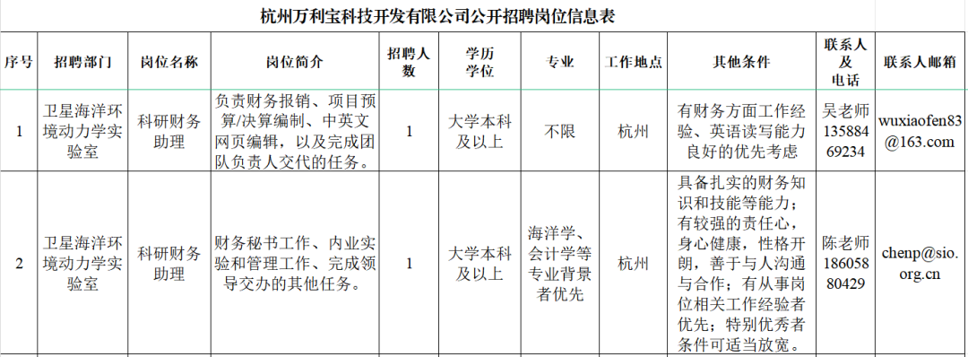 对公示无异议的拟录用人员,办理报到并签订劳动合同。派遣制工作人员与浙江新世纪人才有限公司签订劳动合同,派至海洋二所工作。合同制工作人员与万利宝公司签订劳动合同。