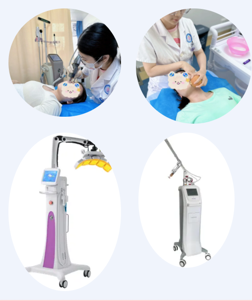 目前皮肤科引进了二氧化碳激光治疗仪、舒敏治疗仪、高频电灼仪等先进设备,开展了过敏源检测、液氮冷冻等检查和治疗,并开展了多种中医特色皮肤治疗。