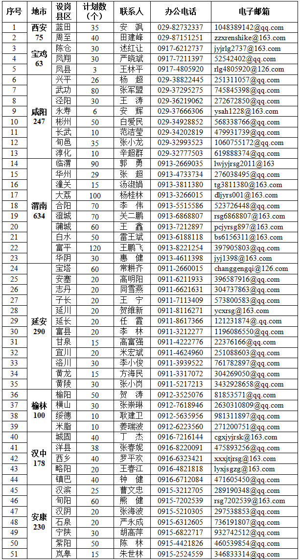 6.陕西省2024年农村学校教师特设岗位计划实施工作各市教育局(特岗办)联系方式