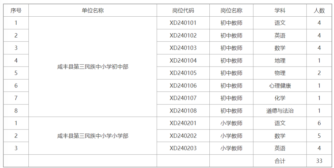 2.县第三民族中小学岗位报名地点:咸丰县教师发展中心315办公室,联系电话:0718—6821203。