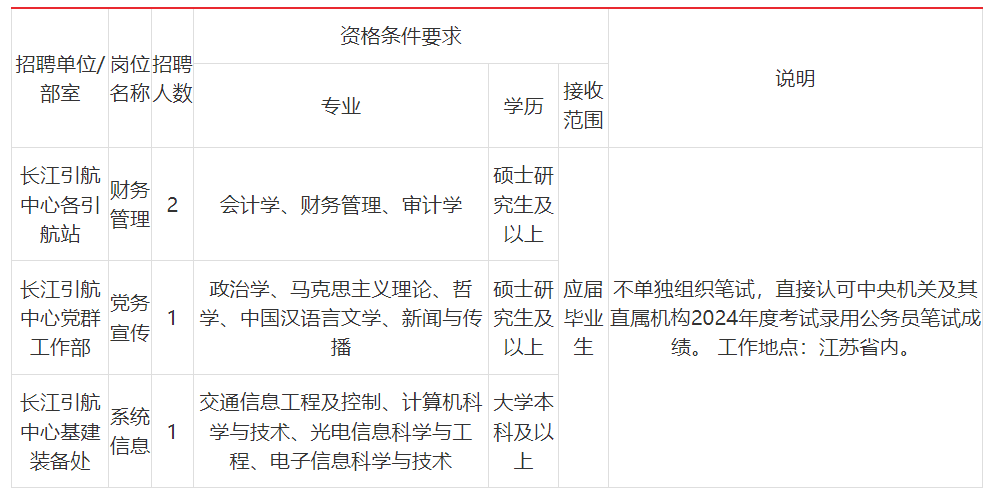 2024年度长江引航中心招聘工作人员公告【4人】