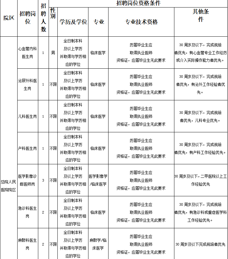 (一) 各院区、分院按总成绩排名根据综合评价择优聘用。所有岗位一经聘用,一律服从安排。