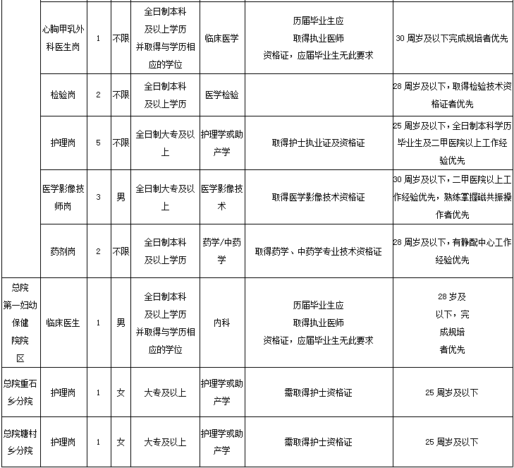 根据中共安远县委办公室、安远县人民政府办公室《关于印发安远县机关事业单位临聘人员管理若干措施(试行)的通知》(安办字〔2022〕109号)和安远县人民政府办公室《关于印发安远县紧密型县域医疗卫生共同体建设工作实施方案的通知》(安府办字〔2024〕66号)等文件精神,因业务开展需要,安远县卫生健康总院人民医院院区、第一妇幼保健院院区、重石乡分院、塘村乡分院现面向社会公开招聘卫生专业技术人员40名,现将有关事项公告如下: