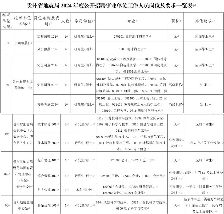 贵州省地震局2024年度公开招聘12名事业单位工作人员公告