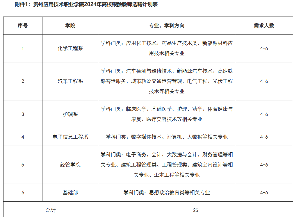贵州应用技术职业学院2024年银龄教师招募公告