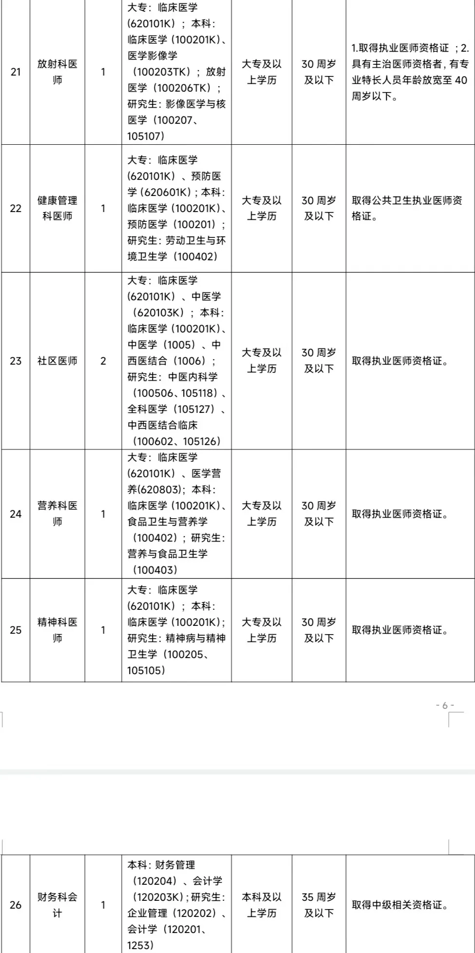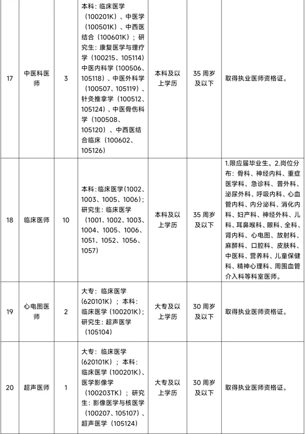 说明:1.年龄:40周岁及以下(1983年6月4日及以后出生)35周岁及以下(1988年6月4日及以后出生),30周岁及以下(1993年6月4日及以后出生)。2.应届毕业生有关要求参照2024年萍乡市公开招聘卫生专业技术人员公告有关规定执行。2024届毕业生须于2024年12月31日前取得毕业证书、学位证书。