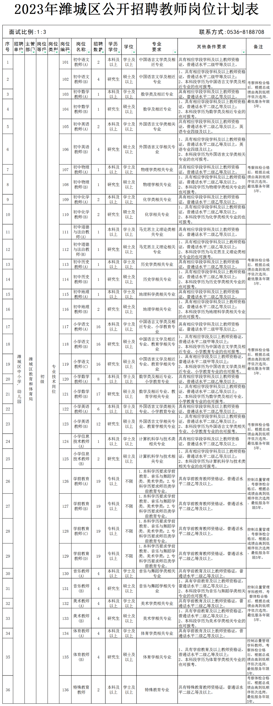 附件:1.2023年潍城区公开招聘教师岗位计划表