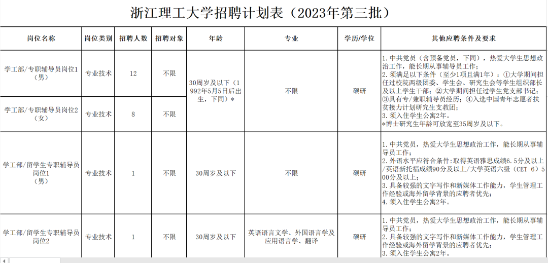 具体见浙江理工大学招聘计划表(附件1)。