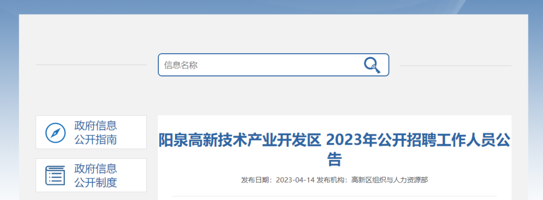 阳泉高新技术产业开发区2023年公开招聘工作人员公告